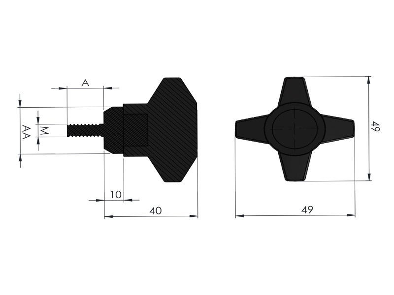| 210 E10 230 | M10 | 19 | 30 | Güçlendirilmiş Polyamid Siyah | SS - Paslanmaz | 0.080 | 60 |