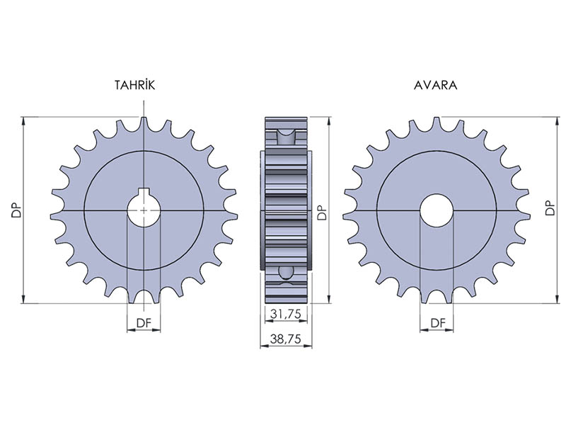 371 TAB KULAKLI DÖNÜŞLÜ PASLANMAZ BANT DİŞLİLERİ (İKİ PARÇA) TALAŞLI İMALAT