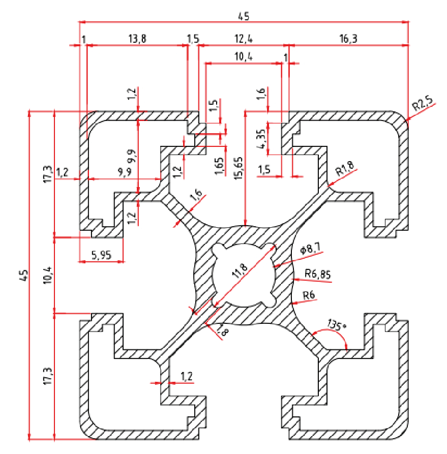 • Profil Ölçüsü: 45 mm x 45 mm