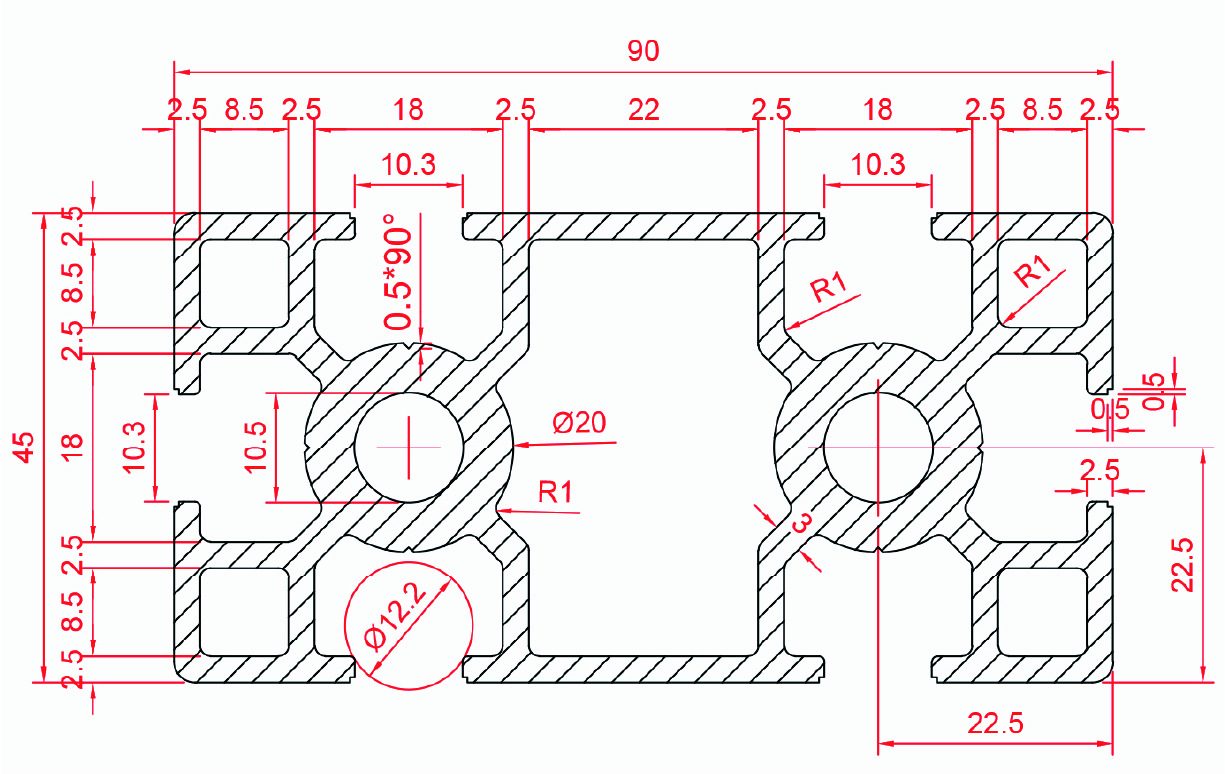 • Ağır Tip Kesit Yapısı: 45x90 ölçüsü, yüksek mukavemet gerektiren sistemler için ideal taşıyıcı profil yapısını sunar.