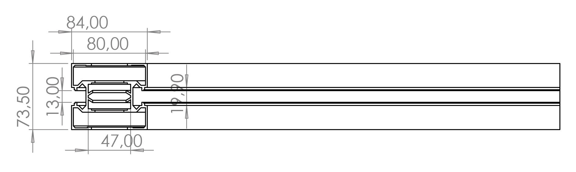• 82,6 mm Profil Ölçüsü: Konveyör dönüş yapıları için optimize edilmiş özel kesit.
