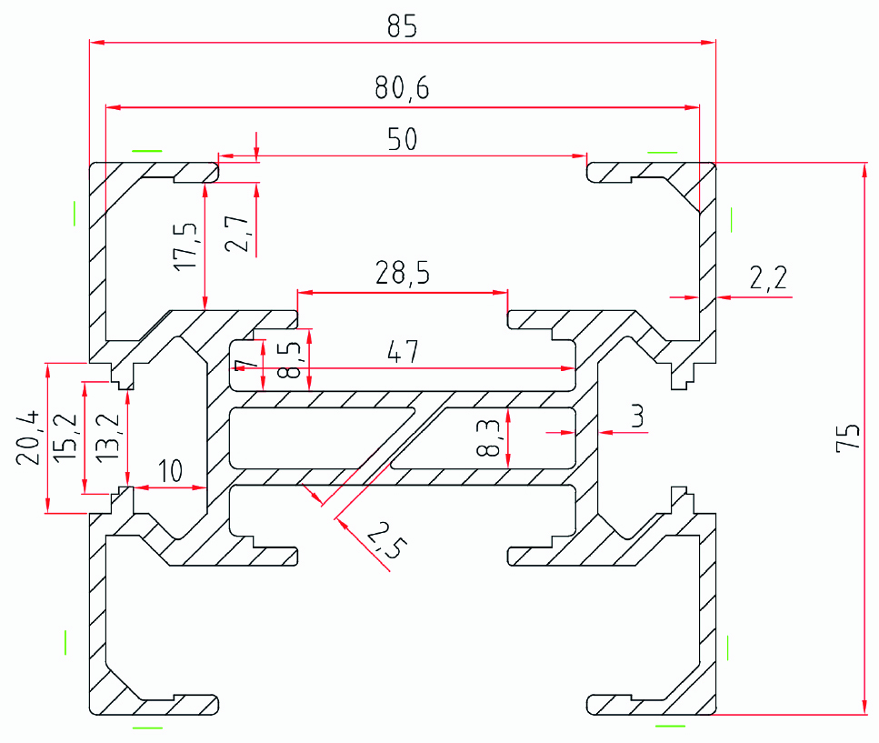 765 - 85 x 75 ELOKSALLI SİGMA ALÜMİNYUM PROFİL
