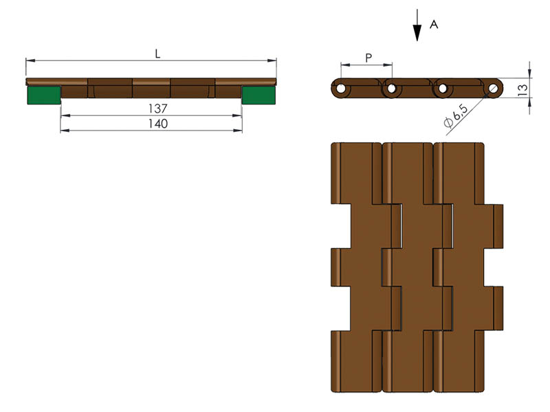 ✅ Düzgün Doğrusal Ağır Tip Çift Menteşeli Asetal Bakla Bant Yüksek Dayanım – Ağır Yük Taşıma – Modüler Konveyör Sistemi Düzgün Doğrusal Ağır Tip Çift Menteşeli Asetal Bakla Bant, endüstriyel hatlarda ağır yük taşıma ve yüksek dayanım gerektiren uygulamalar için tasarlanmış modüler bant modelidir. Çift menteşeli yapısı sayesinde yüksek yüklerde esneklik ve dayanıklılık sağlar, asetall (POM) malzemesi ile uzun ömürlü ve düşük sürtünmeli performans sunar. ⭐ Teknik Özellikler