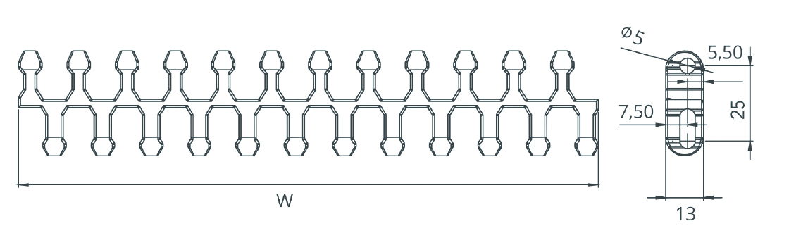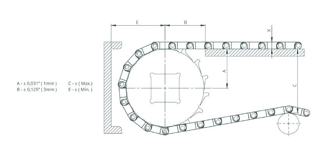 • Uyumlu Dişliler: 25,4 mm adımlı modüler bant dişlileri