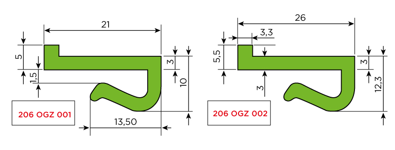 206 OGZ Geçmeli Z Profil, özellikle konveyör sistemleri, paketleme hatları ve endüstriyel taşıma uygulamaları için geliştirilmiş “Z” kesit profil çözümüdür. Alpolen® 1000 (UHMW PE 1000) malzemesinden üretilmiş olan bu profil; yüksek sürtünme direnci, düşük sürtünme katsayısı, kimyasal direnç, düşük sıcaklıklarda çalışabilme ve kayganlık gibi özellikleri bir arada sunar. Profil, 1,5–2 mm kalınlığındaki sac veya levhalara hızlı ve güvenli şekilde geçmeli olarak monte edilir — vida, yapıştırıcı veya ek sabitleme elemanına ihtiyaç yoktur. Kullanım Alanları