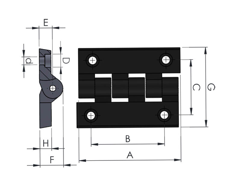 215 - Plastik Menteşe 78x100, geniş yüzey alanı ve yüksek dayanımlı mühendislik plastiği yapısı sayesinde ağır ve büyük kapaklarda güvenli kullanım sağlayan profesyonel bir menteşe modelidir. 78x100 mm ölçüsü, makine muhafazaları ve endüstriyel kapak sistemlerinde maksimum stabilite sunar.