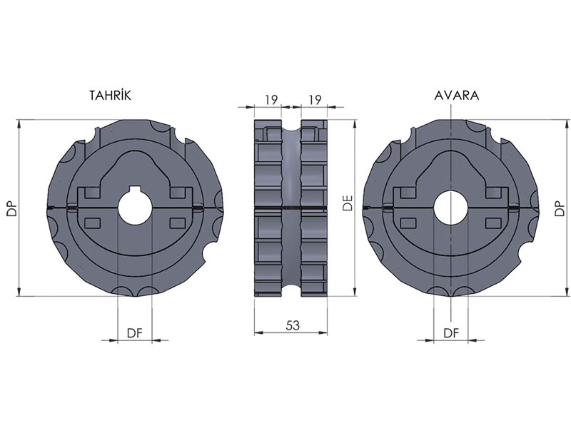 İki parçalı tasarımı sayesinde montaj ve bakım işlemleri son derece kolaydır. Konveyör milini sökmeden dişlinin takılmasına veya değiştirilmesine olanak tanıyan bu yapı, üretim hatlarında duruş sürelerini önemli ölçüde azaltır.