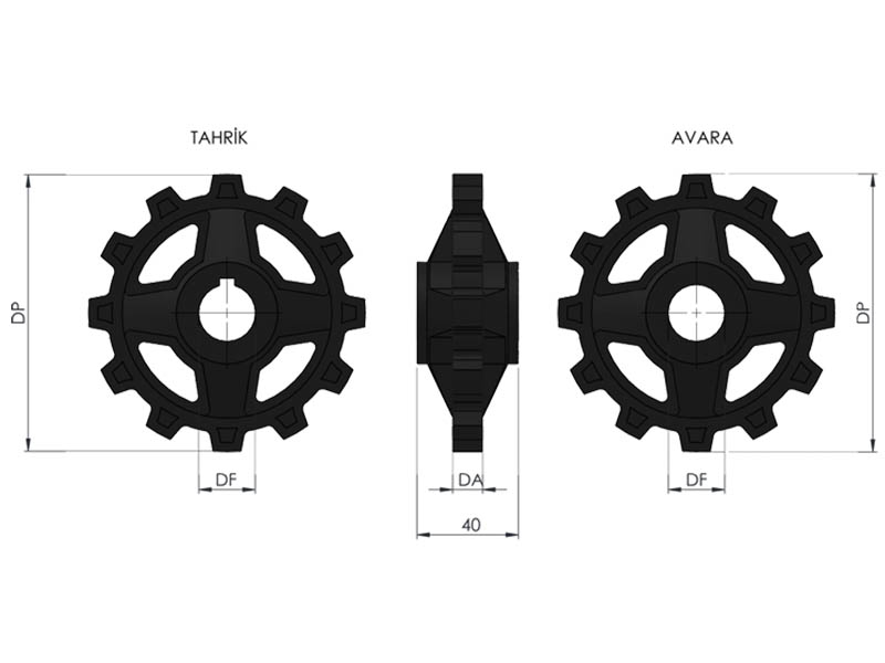 Yüksek dayanım, hafif tasarım ve maksimum verimlilik 383–385 Tek Parça Tahrik Dişlileri, konveyör ve taşıma sistemleri için geliştirilmiş, ağır tip ve hafif tip seçenekleriyle farklı çalışma koşullarına tam uyum sağlayan güçlü tahrik elemanlarıdır. Tek parça özel tasarımı sayesinde yüksek tork altında stabil çalışır, sessiz hareket sağlayarak sistem performansını artırır. Öne Çıkan Özellikler