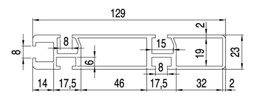 765 - 23 x 129 Konveyör Yan Şase Alüminyum Profil, konveyör bant sistemlerinin yan taşıyıcı gövdesini oluşturmak için tasarlanmış özel bir konstrüksiyon profilidir.