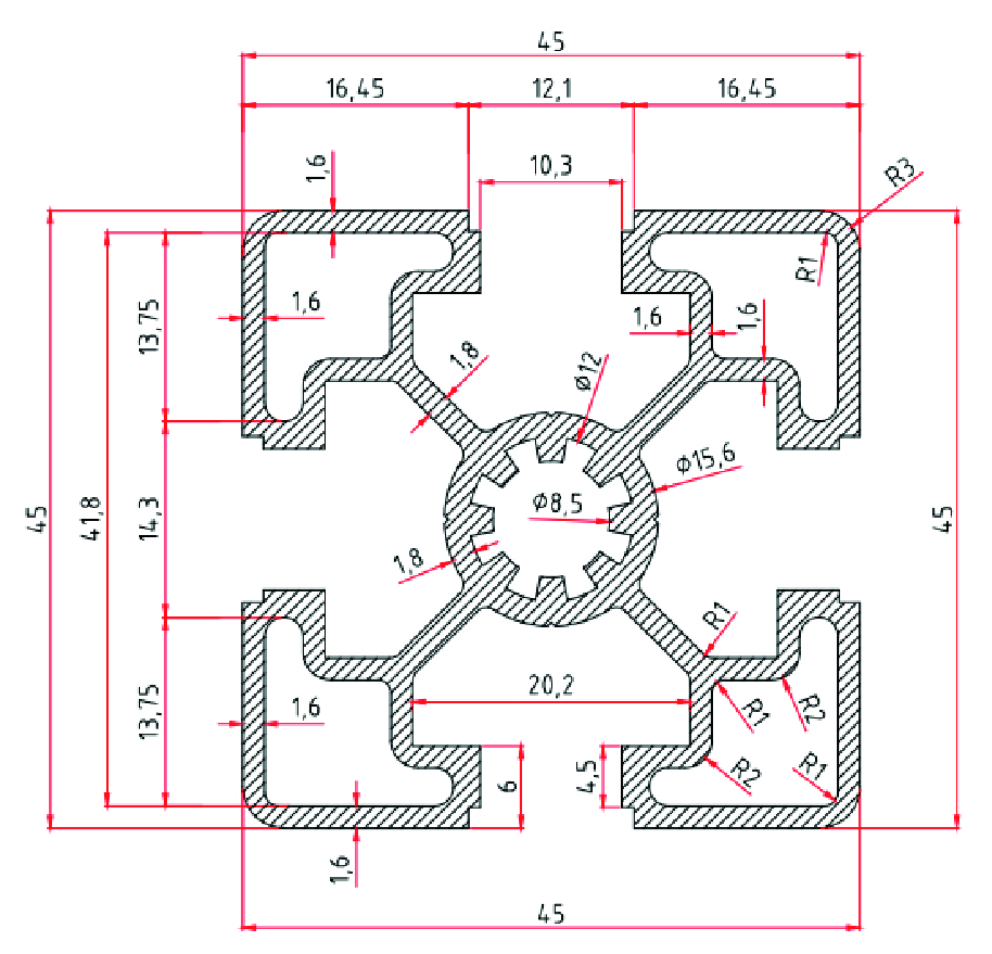 765 - 45 x 45 Eloksallı Ağır Tip Sigma Alüminyum Profil, yüksek taşıma kapasitesi gerektiren endüstriyel yapılarda, makine iskeletlerinde ve otomasyon hatlarında uzun ömürlü kullanım için tasarlanmış güçlü bir konstrüksiyon ürünüdür. Standart sigma profillere göre daha kalın et kalınlığına ve yüksek dayanım değerlerine sahip olması sayesinde ağır yük altında maksimum stabilite sağlar.