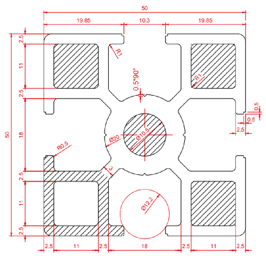 | 765 050 050 | AL | 50 | 50 | 375 | *Ix=20,58 cm4 / Iy=20,58 cm4 | **Wx=8,232 cm3 / Wy=8,232 cm3 | 886,27 | 2,521 | 6 |