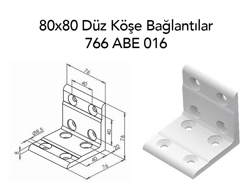 766 ABE – Alüminyum Özel Bağlantı Elemanları, sigma alüminyum profil sistemlerinde özel montaj ihtiyaçlarını karşılamak için tasarlanan yüksek performanslı bağlantı çözümleridir. Standart bağlantı elemanlarının yetersiz kaldığı özel konstrüksiyonlarda maksimum uyumluluk, yüksek dayanım ve hızlı montaj avantajı sunar. Eloksallı alüminyum malzemesiyle hafif, korozyona dayanıklı ve uzun ömürlü bir kullanım sağlar.