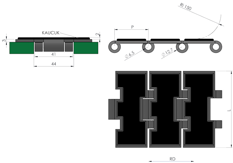 Bu bant türü, özellikle gıda, paketleme, ilaç ve otomasyon hatlarında yüksek hijyen ve verimlilik gerektiren uygulamalar için idealdir. Kauçuk kaplama, hassas ürünlerin güvenli taşınmasını sağlarken, paslanmaz çelik gövde uzun ömür ve korozyon direnci sunar.