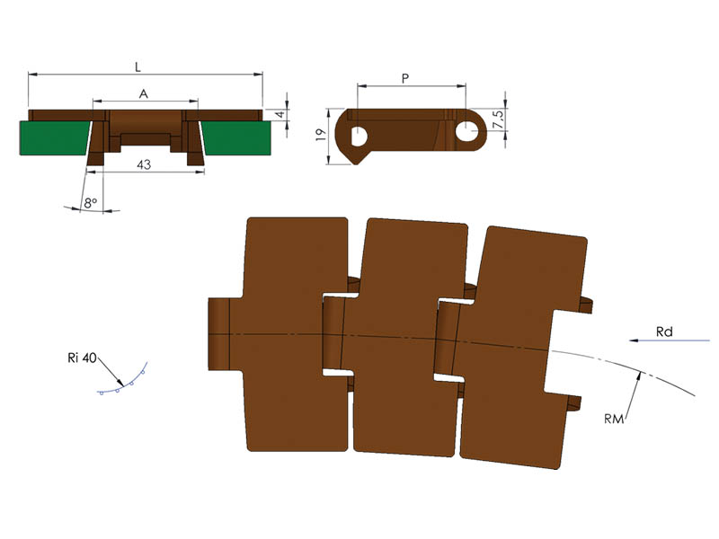 880 Tırnaklı Dönüşlü Bakla Bant, konveyör sistemlerinde yüksek dayanım, güçlü kavrama ve sorunsuz dönüş performansı sağlayan tırnaklı (baklalı) modüler bant tasarımıdır. Tırnaklı yapısı sayesinde bant üzerinde taşınan ürünleri sabitleyerek kaymayı önler ve özellikle eğimli alanlarda güvenli taşıma sağlar. Dönüş noktalarında stabil hareket sunan özel bakla bağlantısı, hem sessiz çalışma hem de uzun ömürlü kullanım avantajı sağlar.