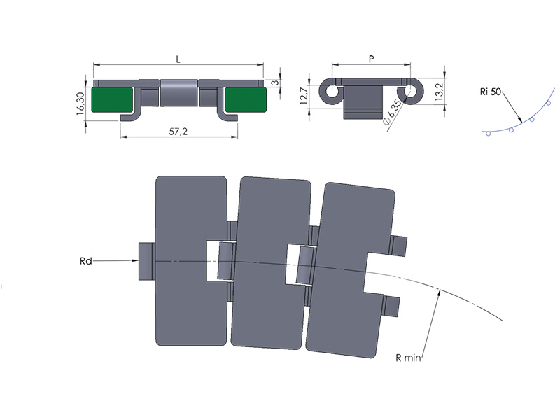 TAB-Kulaklı Dönüşlü Paslanmaz Bakla Bant, konveyör sistemlerinde yüksek stabilite, uzun ömür ve sorunsuz dönüş kabiliyeti sağlamak için tasarlanmış üstün kalite bir bant çözümüdür. TAB (kulaklı) tasarımı, özellikle dönüş noktalarında modüller arası güvenli bağlantı sağlayarak titreşimsiz ve sessiz bir çalışma performansı sunar. Paslanmaz çelikten üretilmiş baklalar, korozyona, yüksek sıcaklığa ve kimyasal etkilere karşı yüksek direnç gösterir. Modüler yapısı sayesinde bakım, montaj ve parça değişimleri hızlı ve pratiktir. Bu özellikleri, gıda, paketleme, otomasyon ve endüstriyel taşıma hatlarında maksimum verimlilik ve uzun ömür sağlar. Dönüşlü hatlar için optimize edilmiş yapısı, bantın akıcı ve güvenli bir şekilde hareket etmesini garanti eder. Hijyenik ve sağlam yüzeyi, özellikle gıda ve ilaç sektörlerinde güvenli kullanım olanağı sunar. TAB-kulaklı dönüşlü paslanmaz bakla bant, titreşimsiz ve güvenli taşıma sağlayan modüler tasarımıyla konveyör sistemlerinde yüksek performans sunar. Gıda, ilaç ve otomasyon hatları için ideal çözümdür. TAB-Kulaklı Dönüşlü Paslanmaz Bakla Bant, paslanmaz baklaları ve kulaklı modüler tasarımı sayesinde dönüşlerde stabil, sessiz ve uzun ömürlü taşıma sağlayan endüstriyel konveyör bant modelidir. ⭐ Öne Çıkan Özellikler