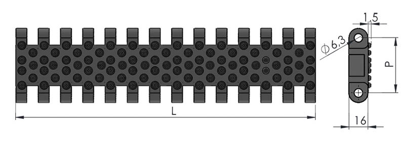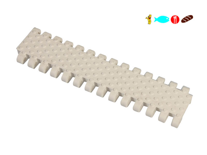 Yumru desenli yüzeyi, ürünlerin bant üzerinde kaymasını önler ve ekstra tutuş sağlar. 50,8 mm modül yüksekliği, ağır yük taşıma kapasitesi ve uzun ömürlü kullanım sunar.
